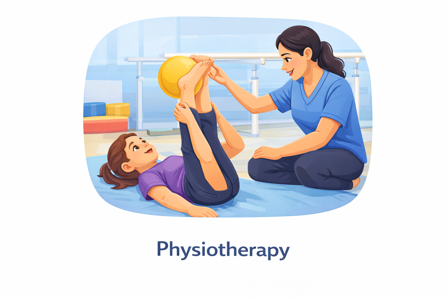 Pediatric physiotherapy focused on improving strength, flexibility, posture, and overall physical development.